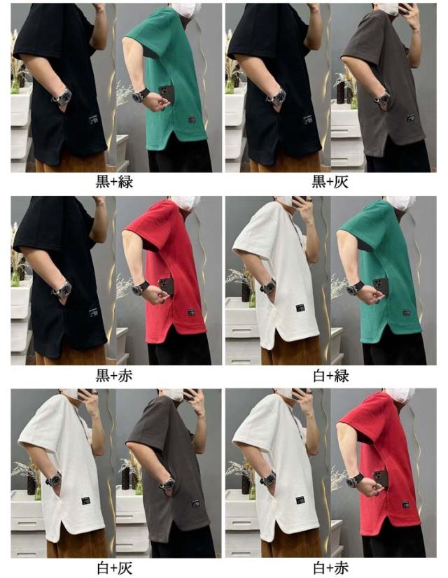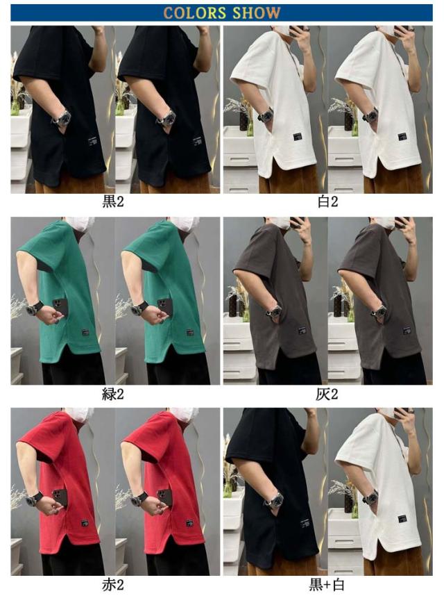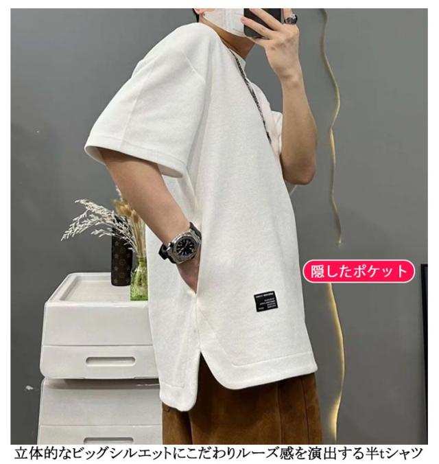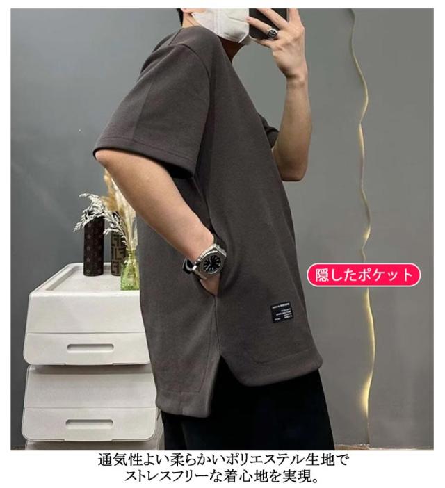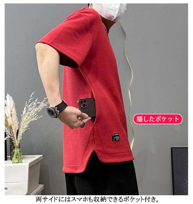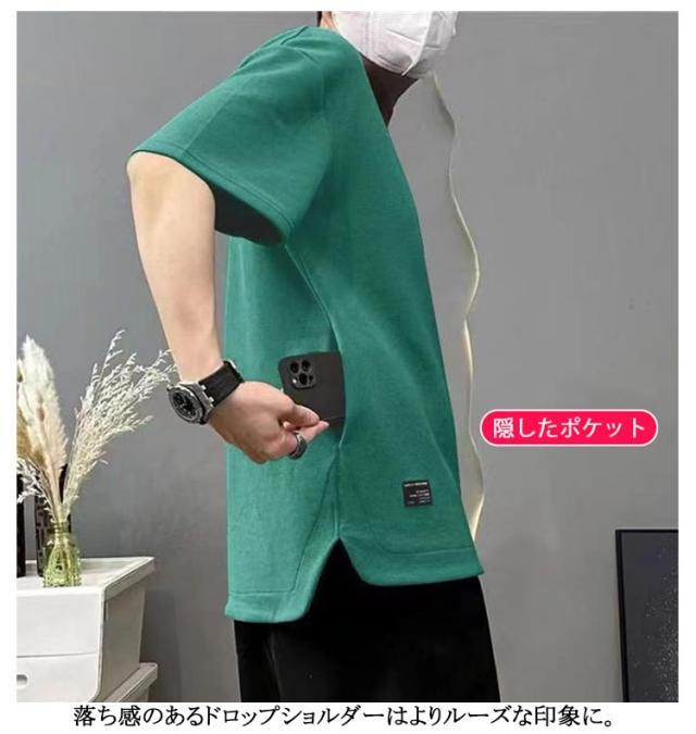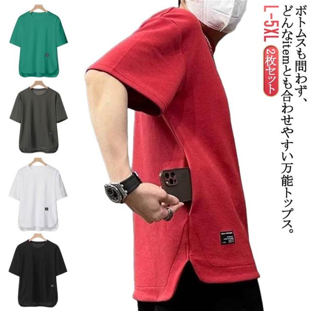 2枚セット 大人 2枚セット メンズ 涼しい Tシャツ ポケット付き tシャツ 2枚セット 五分袖 半袖Tシャツ 丸首 体型カバー 大きいサイズ クルーネック 夏服 大きいサイズ サイドポケット 男性 トップス ティシャツ 通気性 無地 シンプル カジュアル 父の日