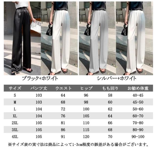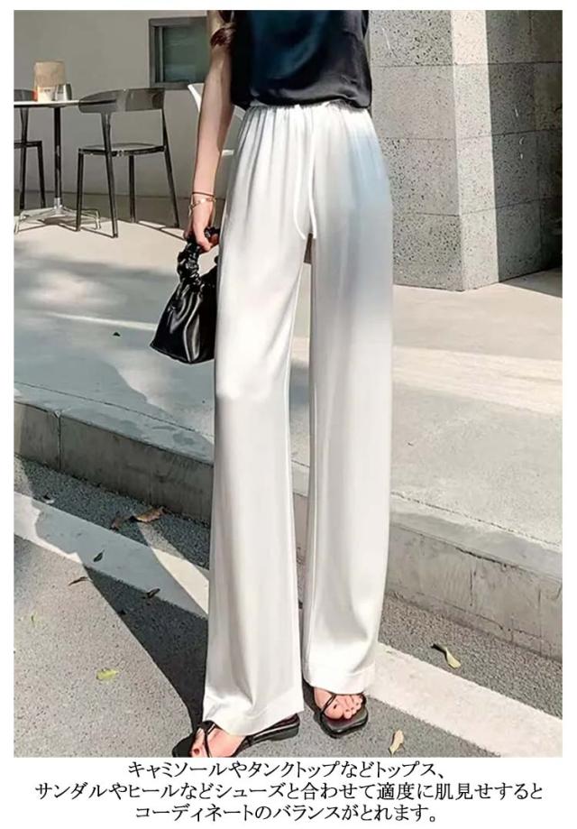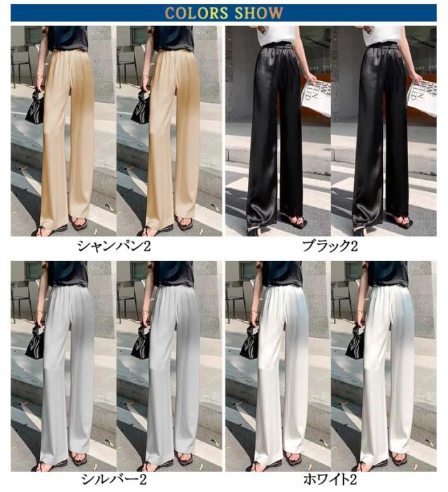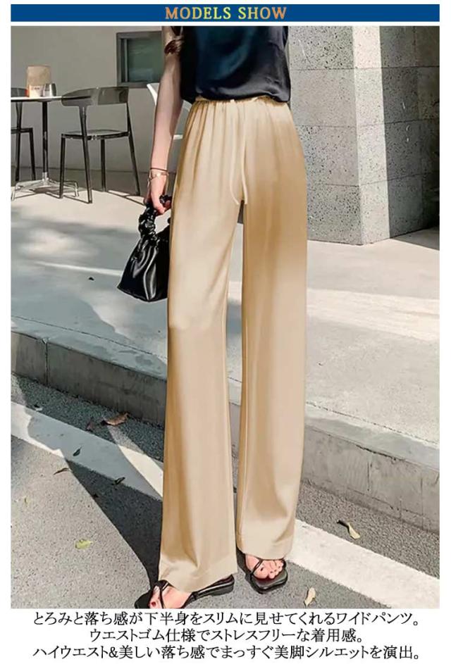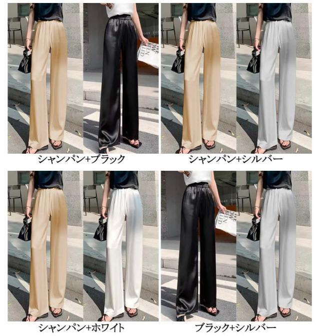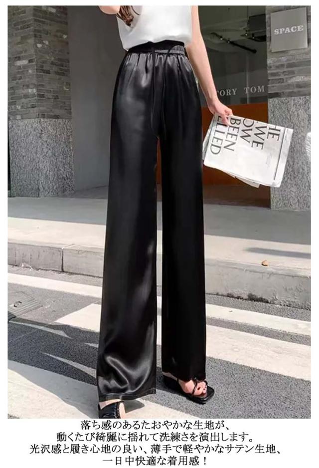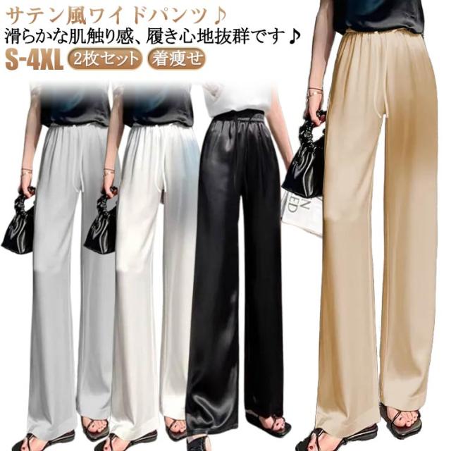 サテン 着痩せ パンツ ゆったり ワイドパンツ 薄手 サテンパンツ 美脚 パンツ ハイウエスト イージーパンツ 2枚セット きれいめ 夏 レディース 大きいサイズ サテンパンツ 光沢感 通勤 無地 レディースファッション おしゃれ ワンマイルウェア カジュアル