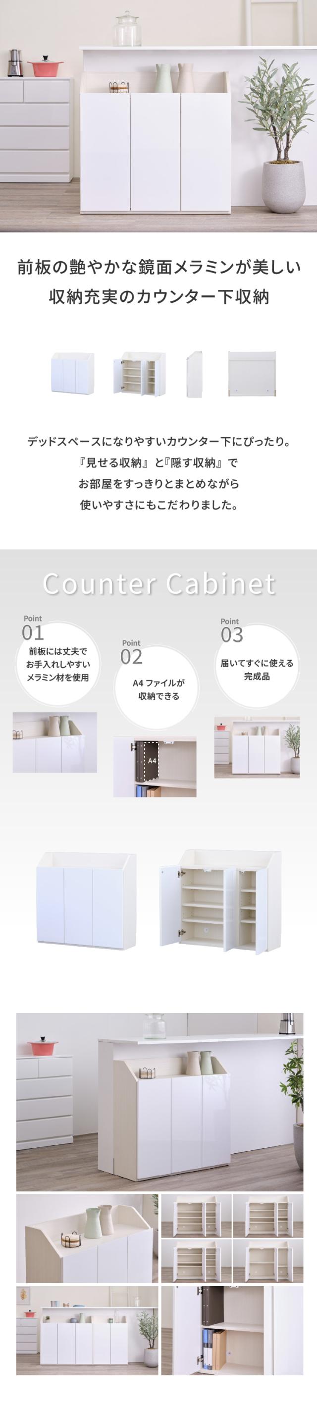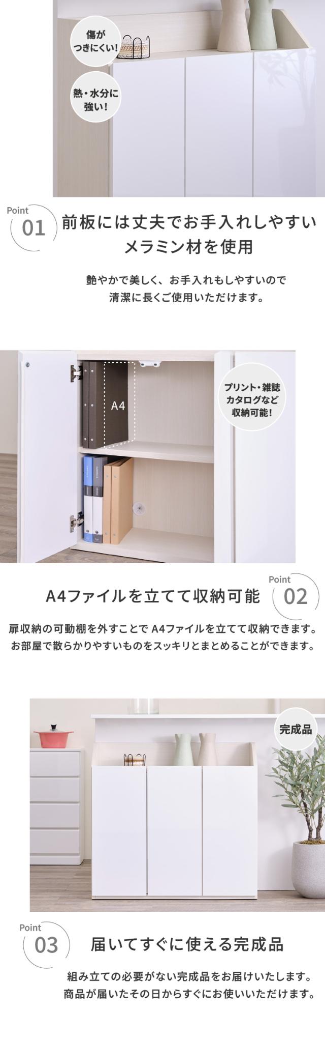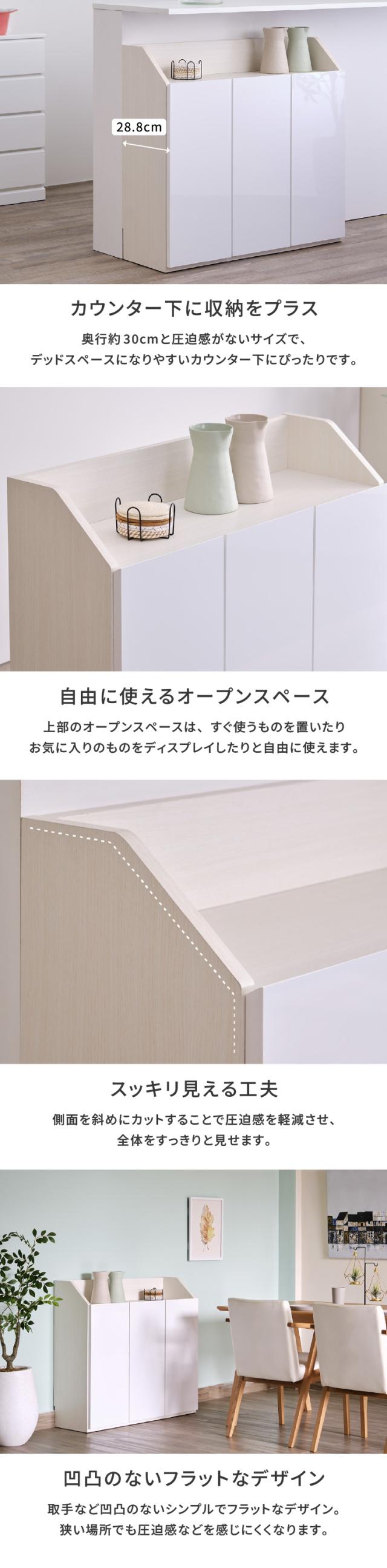 カウンター下収納 完成品 鏡面 メラミン 幅90cm 奥行30cm 高さ85cm 省スペース コンパクト スリム 可動棚 A4ファイル 収納 キッチン収納 デッドスペース 壁面収納風 ホワイト 北欧 シンプル SEINA ISSEIKI