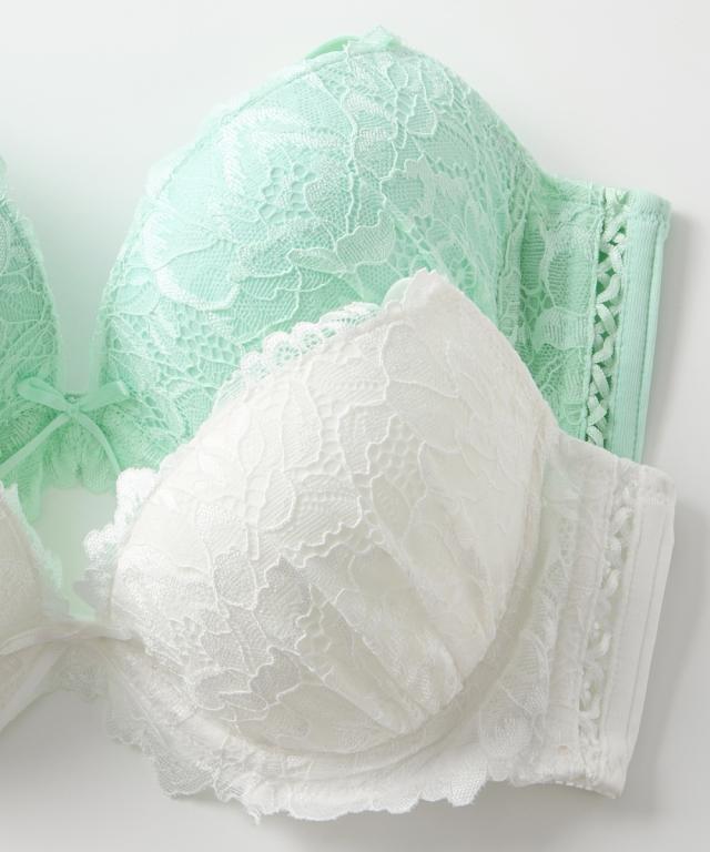大柄ストレッチレースがラグジュアリーなブラ&ショーツセット。 サイドのレースアップデザインがキュート 脇高仕様で気になる脇肉もスッキリシルエット。 下厚モールドカップデ美しいバストラインヘ。 詳しいショーツサイズについては詳細画像内サイズ表を参考にお持ちのショーツと比較してみてください。