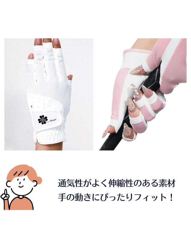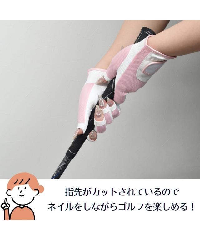 ネイルも楽しめる! 指先カットゴルフグローブ(レディース/Mサイズ)