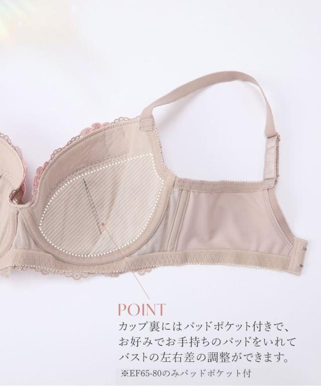 品質=ナイロン、ポリエステル、その他 Uバック 3/4カップ ワイヤー入り レース柄の出方が多少異なる場合があります。DEFカップのアンダー80までは2段2列 GHIJKカップとアンダー85以上は3段3列 ボーンあり パッドなし、パッドポケット付、アンダー85以上はポケットナシ (取り外し不可) ミディアムタイプ - ストラップ調節可 原産国:中国製(企画デザインは日本) 備考:手洗い ※お洗濯は、必ず取り扱い表示にしたがってください。