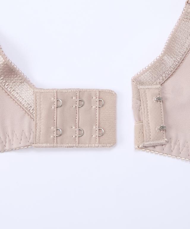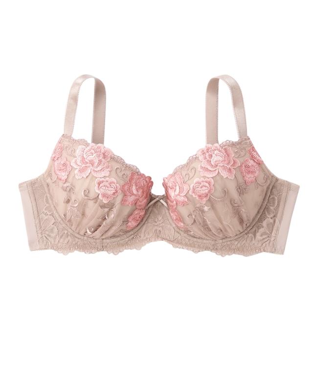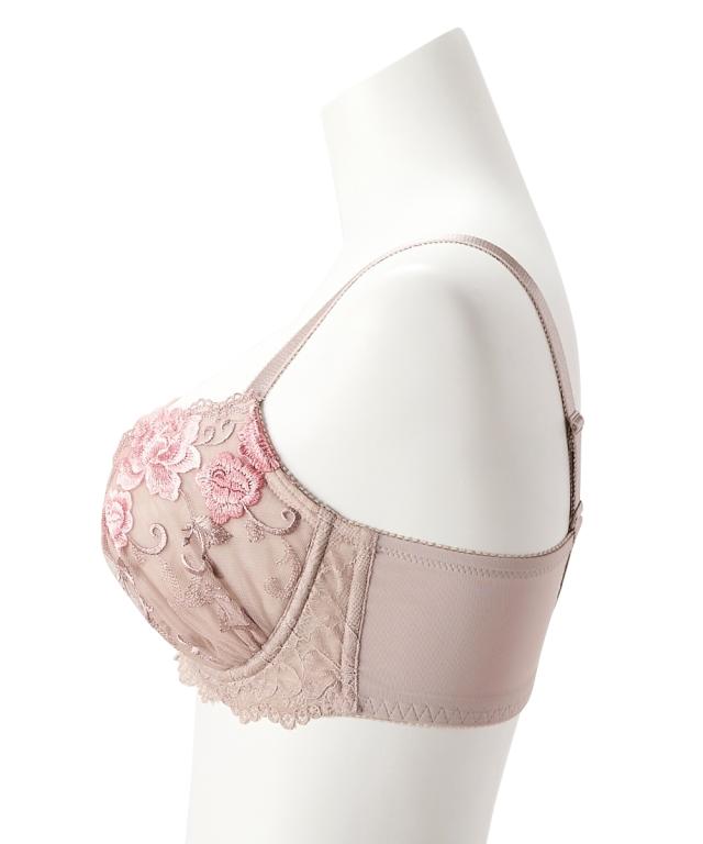 グラマーバストさんのためのデザインブラジャーシリーズ、高嶺のブラ。 かわいいも着け心地もあきらめたくない、そんなあなたのためのシリーズ。 アンティークなローズ刺しゅうがバストを彩るブラジャー。 大人っぽいブラウンとシックな印象のダークグリーンの2色展開。 【ポイント】 ・刺しゅうがバストを華やかに魅せてくれます。 ・カップ裏のサイドパネルでバストの横流れを防止。 ・パッドポケット付き。お手持ちのパッドを入れてボリューム調整が可能。 ・バックU字スタイルで安定感のある着け心地。 ・ストラップ太めで肩の負担を軽減してくれます。