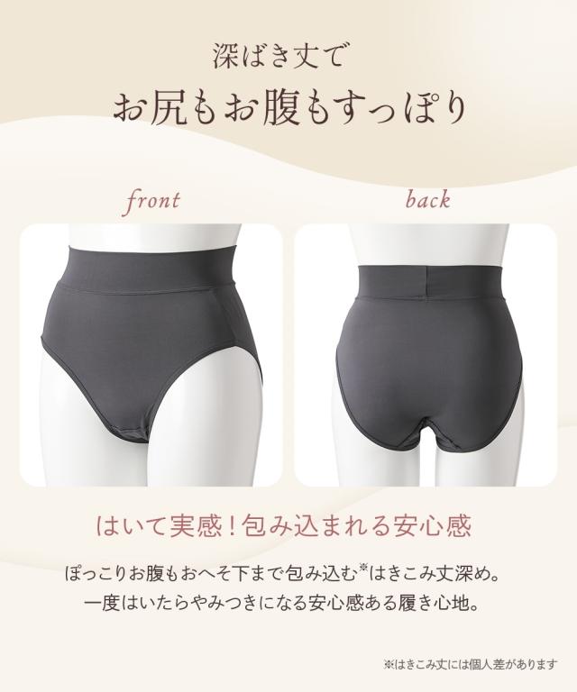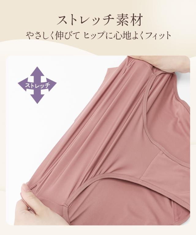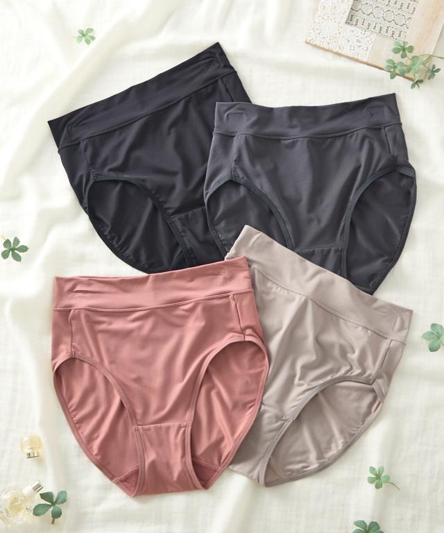 ■つるんと薄くてストレッチ お腹らくちん深ばき丈ショーツ4枚組■ つるんとフィット つるんと体にフィットするショーツです! おすすめポイント ・お腹すっぽり深ばき ・締め付けずぴったりフィット ・デイリー使いにうれしい枚数組 ■ウエストはゴムなしで締めつけず快適 ゴムを使用せず、生地を折り返して 締めつけずくいこみにくい。 ■つるつるしたすべりのいい素材 ボトムがするっと着用できます。 ■ストレッチ素材 やさしく伸びてヒップに心地よくフィットします。 ■クロッチ裏は綿100%素材 快適にはいてほしいから、クロッチ裏は綿100%生地を重ねています。 通気性がありムレにくい。お肌も喜ぶこだわりです。 ■深ばき丈でお尻もお腹もすっぽり はいて実感!包み込まれる安心感 ぽっこりお腹もおへそ下まで包み込む(※) はきこみ丈深め。 一度はいたらやみつきになる安心感ある履き心地。 ※はきこみ丈には個人差があります。 ■サイズ豊富!7サイズから選べる Mサイズから6Lサイズまで、どんな体形の方にもご満足いただけるよう、サイズを多数揃えました。 びったりの自分サイズを見つけてください。 ■お買い得!洗い替えに便利な枚数組 ※商品の色移りを防止す