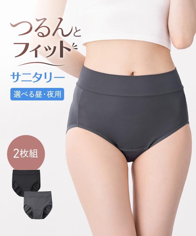 つるんと薄くてストレッチ お腹らくちん深ばき丈サニタリーショーツ選べる昼・夜用2枚組(羽付ナプキン対応)