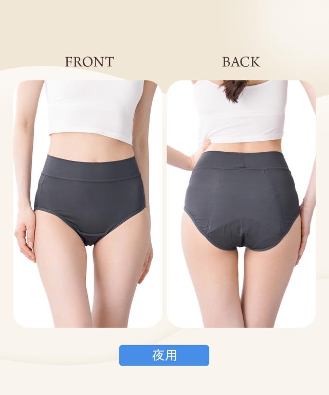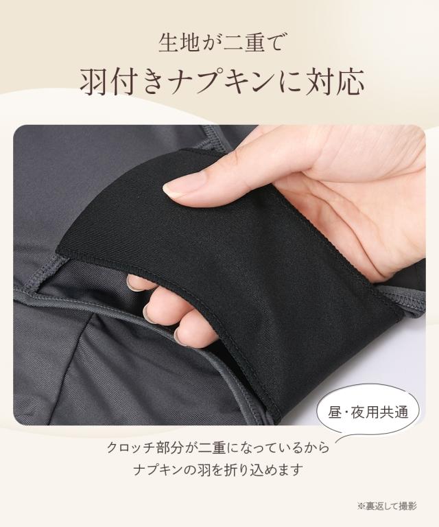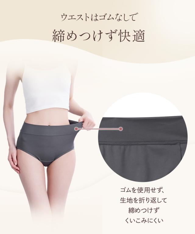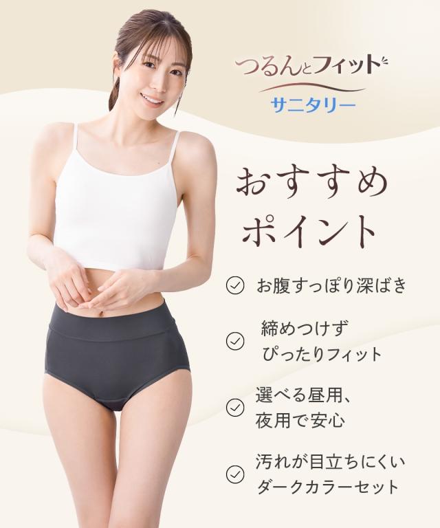 ■つるんと薄くてストレッチ お腹らくちん深ばき丈サニタリーショーツ選べる昼・夜用2枚組(羽付ナプキン対応)■ つるんとフィット つるんと体にフィットするショーツです! おすすめポイント ・お腹すっぽり深ばき ・締め付けずぴったりフィット ・選べる昼用、夜用で安心 ・汚れが目立ちにくい。ダークカラーセット ■防水布でモレ防止 昼用・夜用セットが選べます (昼用)軽い日やよく動く日中におすすめのレギュラータイプ (夜用)後ろウエストまで大きな防水布付き。寝ている間のつたいモレを防ぐ。 ■生地が二重で羽付きナプキンに対応(昼・夜用共通) クロッチ部分が二重になっているから ナプキンの羽を折り込めます。 ■ウエストはゴムなしで締めつけず快適 ゴムを使用せず、生地を折り返して 締めつけずくいこみにくい。 ■つるつるしたすべりのいい素材 ボトムがするっと着用できます。 ■ストレッチ素材 やさしく伸びてヒップに心地よくフィットします。 ■深ばき丈でお尻もお腹もすっぽり(昼・夜用共通) はいて実感!包み込まれる安心感 ぽっこりお腹もおへそ下まで包み込む(※) はきこみ丈深め。 一度はいたらやみつきになる安心感ある履き心地。 ※はきこみ丈には個人