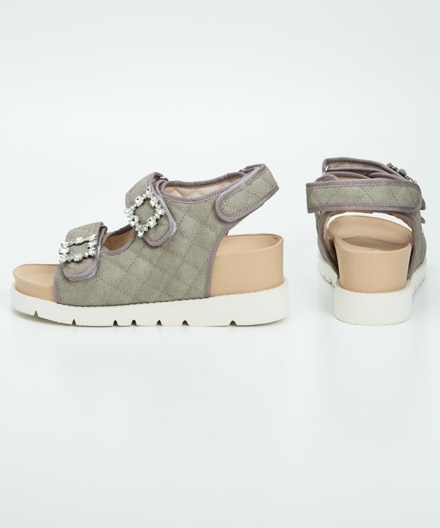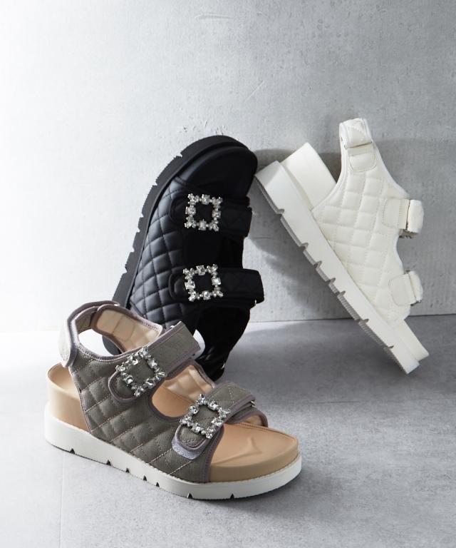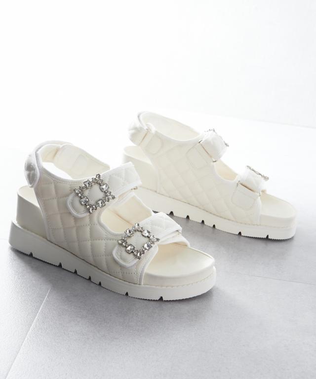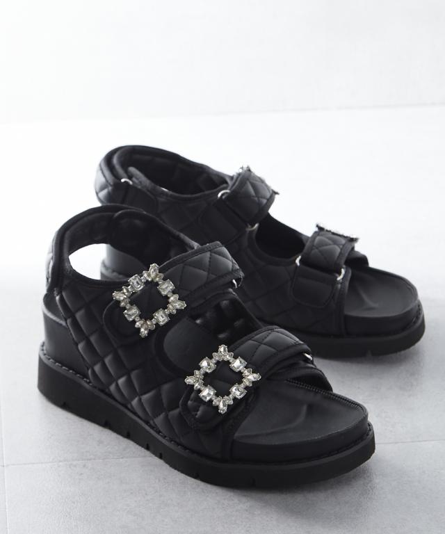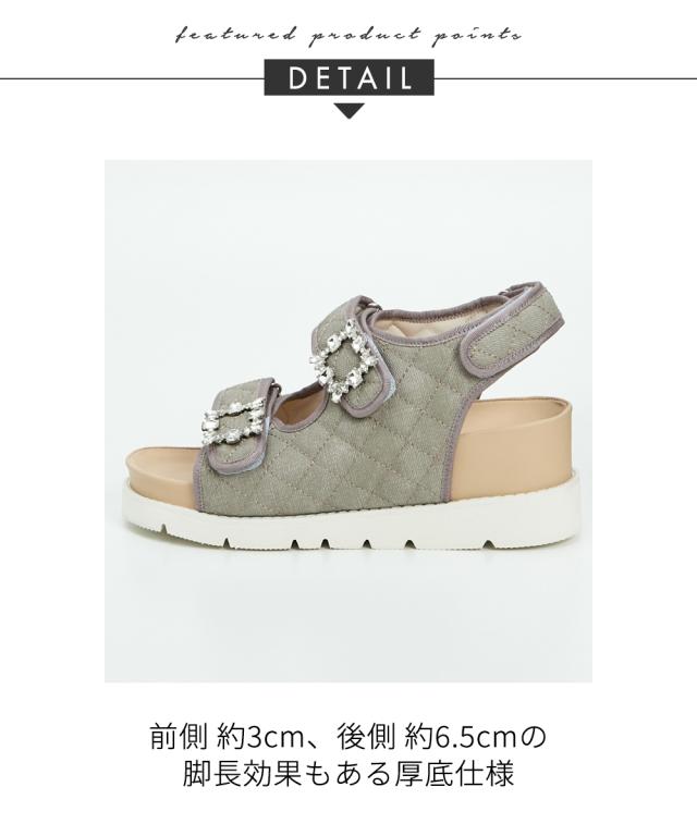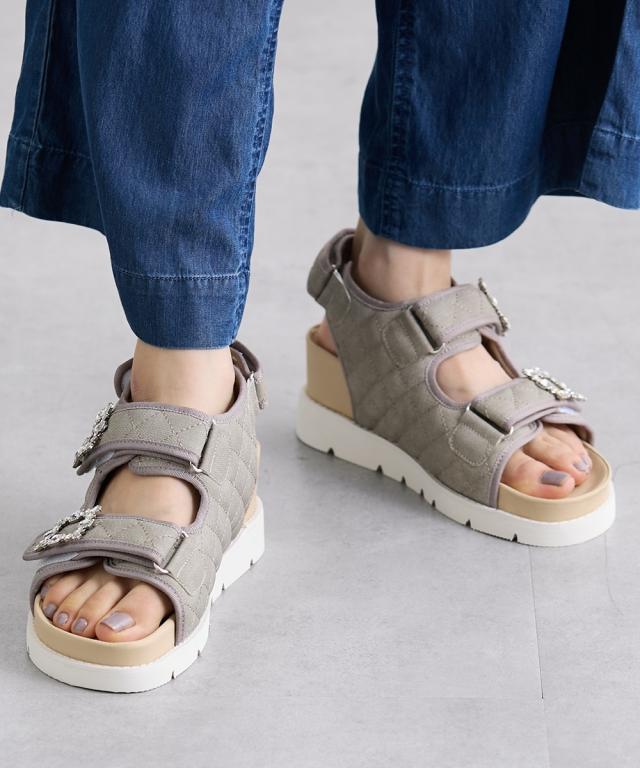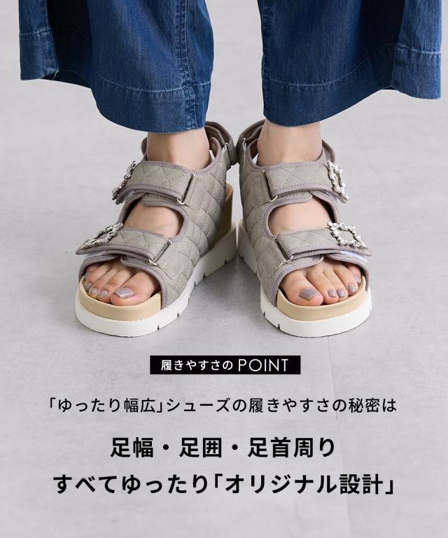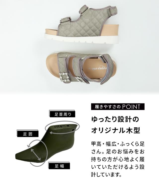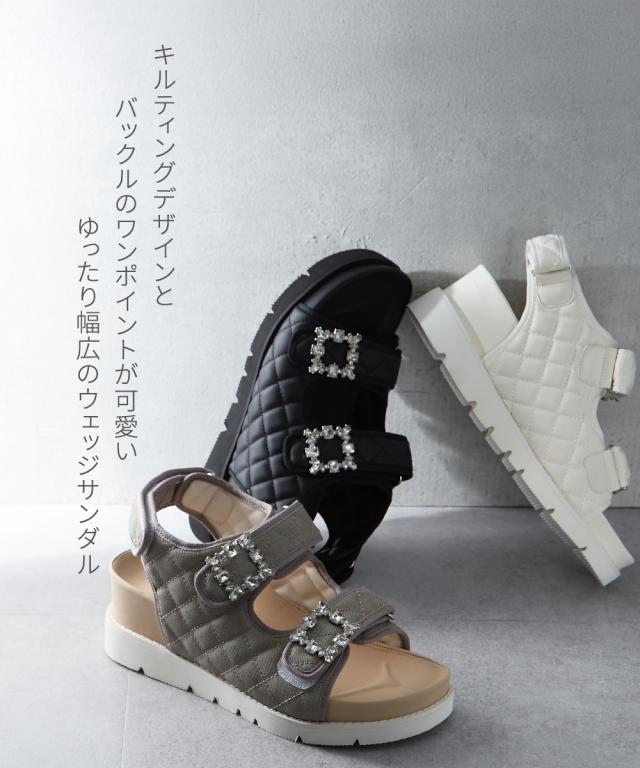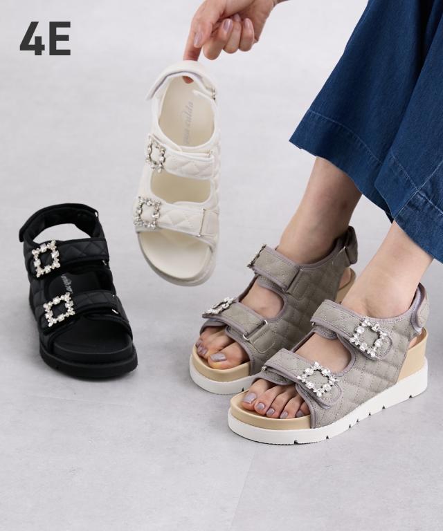 【ゆったり幅広】キルティングウェッジサンダル(ワイズ4E)