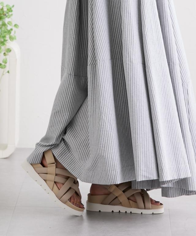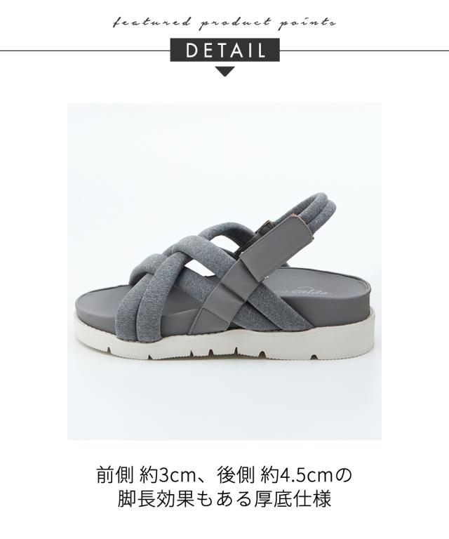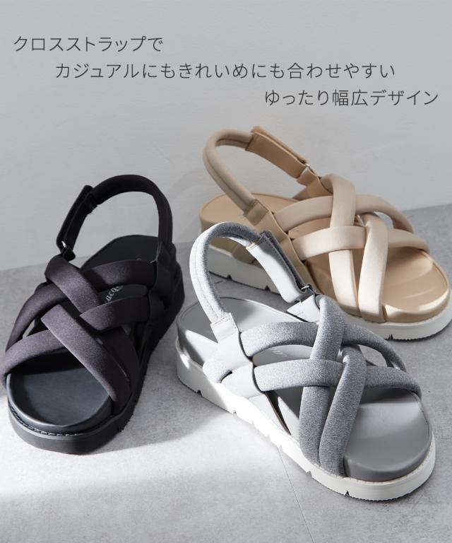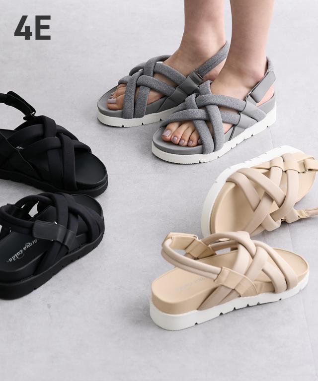 ふわふわのクロスストラップが足を包んでくれるサンダル。さりげなくスタイルアップできる厚底仕様です。 ■ポイント ・低反発中敷き仕様 ・屈曲性が良く足の動きに馴染んで歩きやすい ・クロスベルトがポイントになったデザイン ・厚底でスタイルアップ ・甲高、幅広、ふっくら足さんなど、足のお悩みをお持ちの方に心地よく履いていただける設計 ■ニッセンオリジナルの大きいサイズ規格 本当に合う靴に出会った事はありますか ニッセンの4Eは、靴底の幅を広げ、甲や足首周りもゆったりの独自設計。 靴のサイズにお悩みのお客様へ向けて、サイズが大きくてもバランス良くきれいに見えるよう企画したオリジナルシューズです。