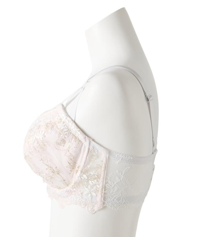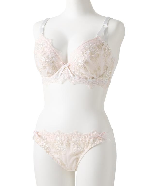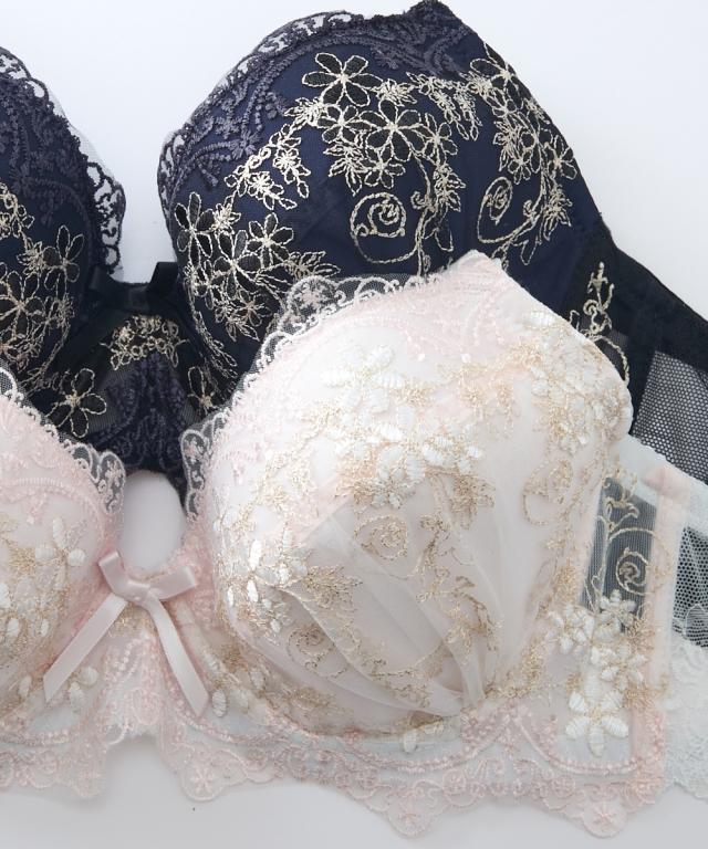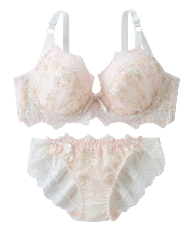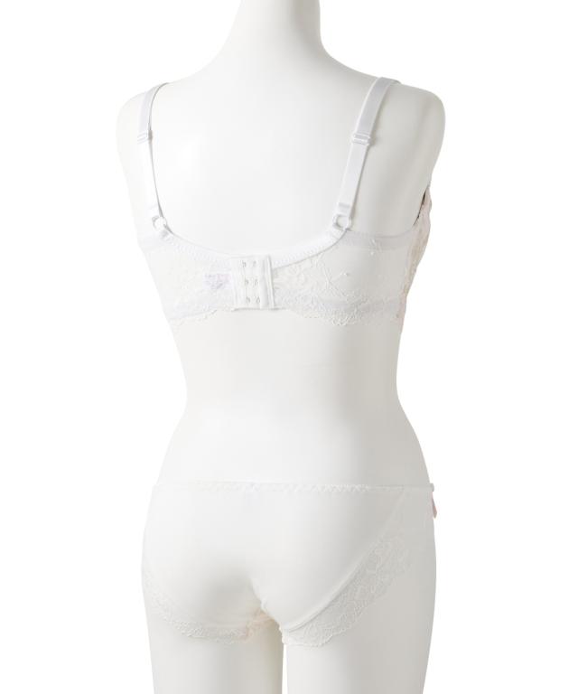 エレガントなブラ&ショーツが登場! アンティークなフラワー刺繍が目立つデザイン! 胸元&ショーツのダブルカラーリボンでより華やかさアップ! 脇高設計で背中からしっかり寄せこみ、美谷間&美シルエット! ・幅の広い脇高設計でサイドのはみ肉をしっかりキャッチして、バストの横流れを防止してくれる脇高ブラジャー。 ブラの着用で気になる背中の段差を、脇から背中までカバーしてフラットに整えます。