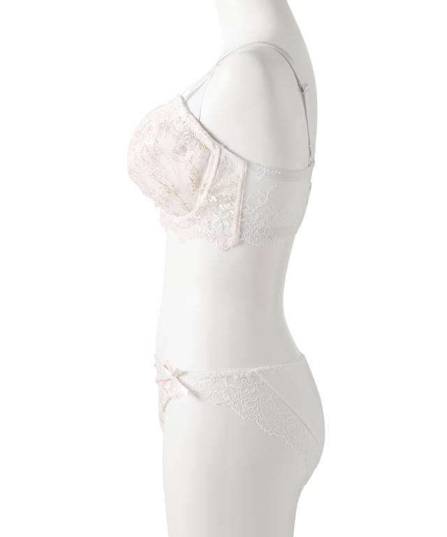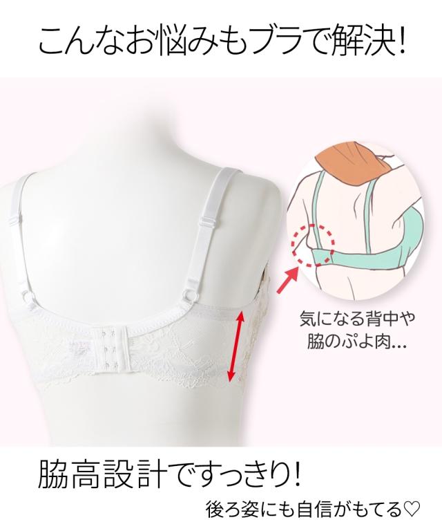 エレガントなブラ&ショーツが登場! アンティークなフラワー刺繍が目立つデザイン! 胸元&ショーツのダブルカラーリボンでより華やかさアップ! 脇高設計で背中からしっかり寄せこみ、美谷間&美シルエット! ・幅の広い脇高設計でサイドのはみ肉をしっかりキャッチして、バストの横流れを防止してくれる脇高ブラジャー。 ブラの着用で気になる背中の段差を、脇から背中までカバーしてフラットに整えます。