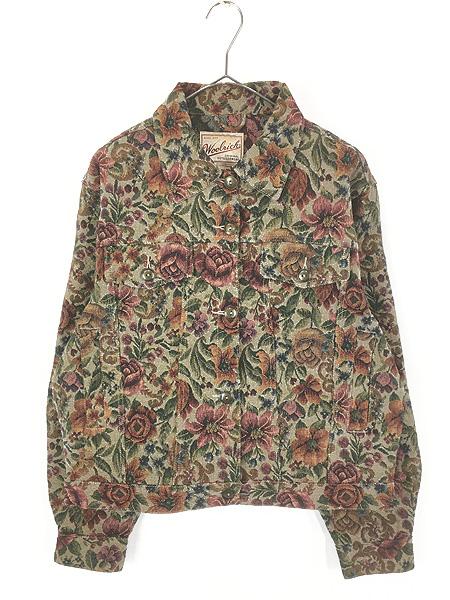レディース 古着 90s WoolRich 花 フラワー 総柄 デザイン ゴブラン トラッカー ジャケット M 古着