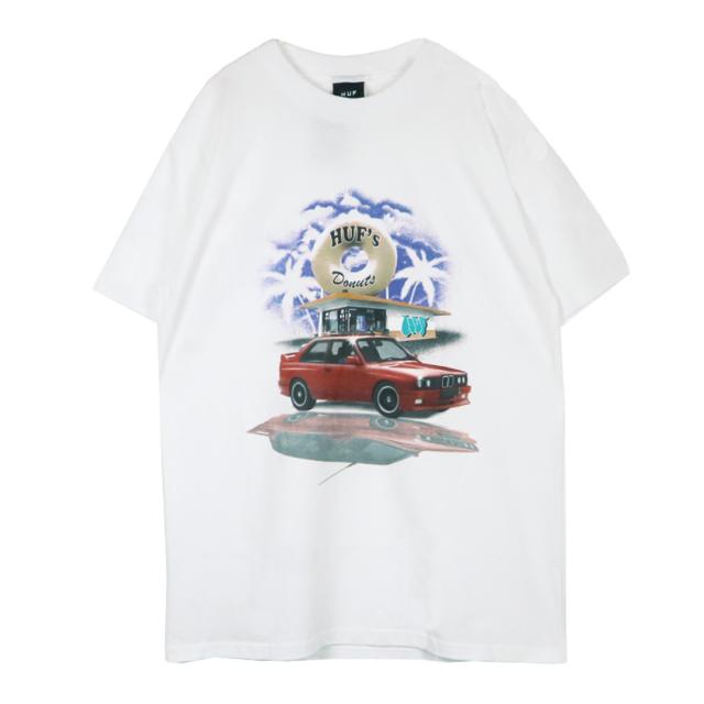 大人気のストリートブランド HUF/ハフから、半袖プリントTシャツが入荷。フロントに真っ赤なスポーツカーとドーナツショップのアートワークが施されたポップでアメリカンなデザイン。スプレーアート風のブランドロゴが配置されているので、スケーターファッション好きから車好きの方も必見!