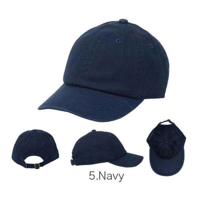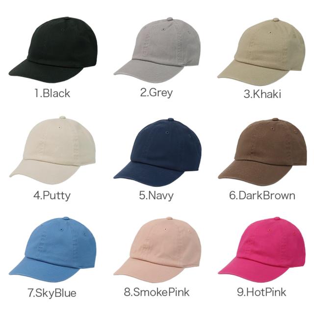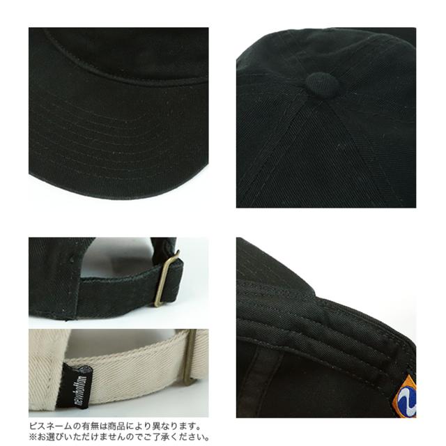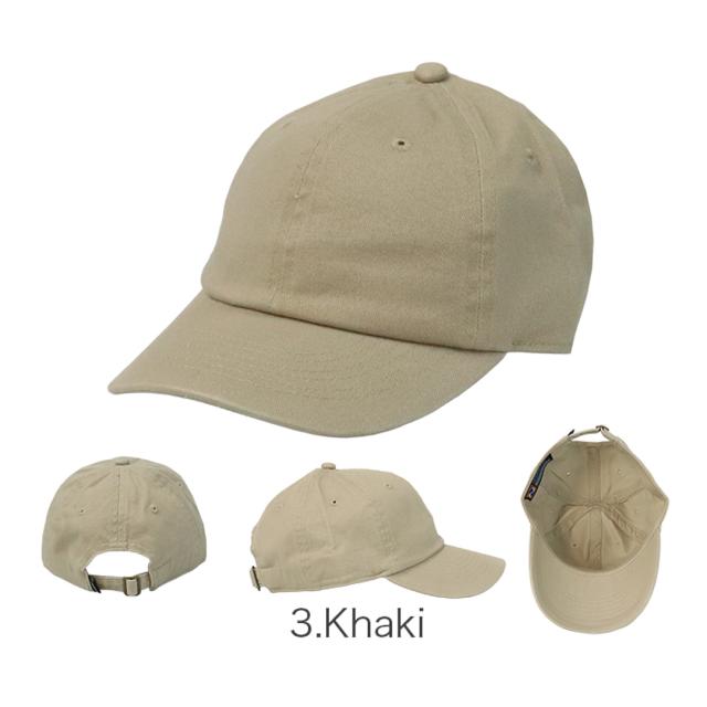 ストーンウォッシュ加工が施されたコットンツイルを使用することで柔らかな質感を実現。ツバはカーブバイザー、フロントパネルは芯のない浅めのローキャップで、アジャスター付きのストラップバック仕様。無地のボディを生かして、刺繍やワッペンでアレンジするのもおすすめです。