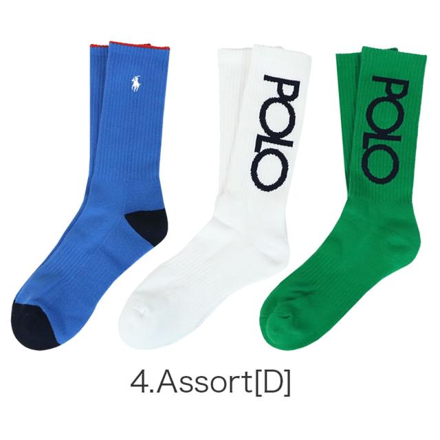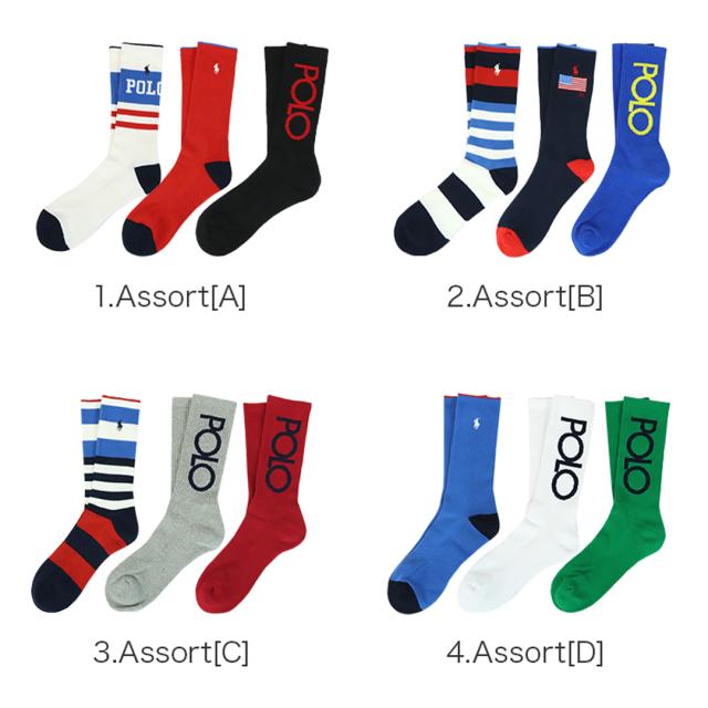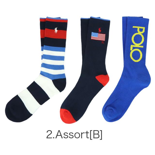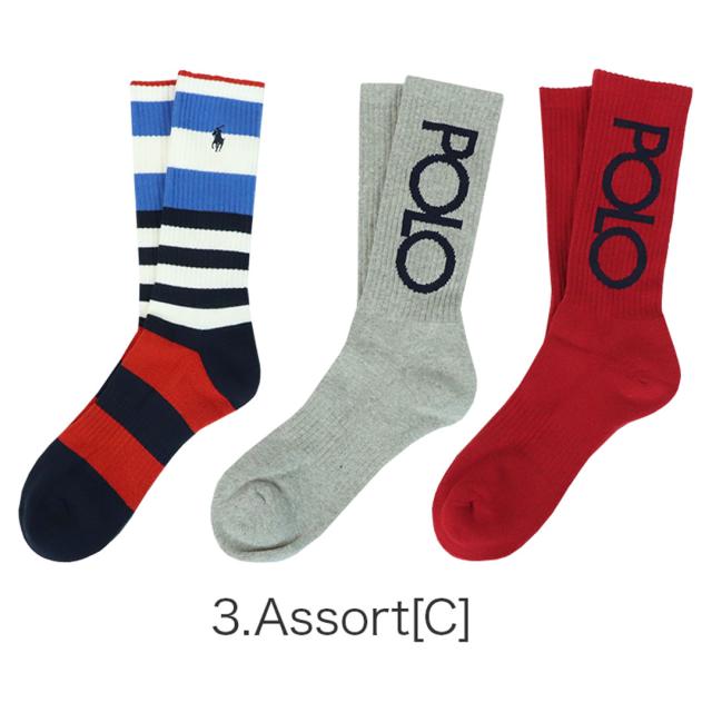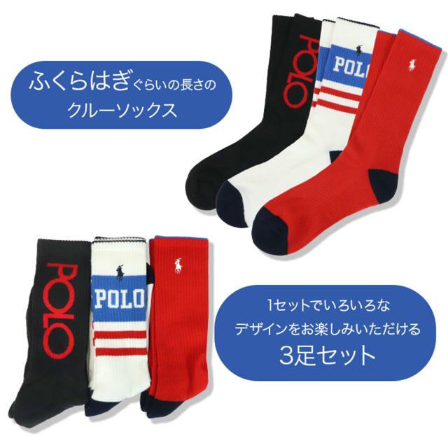 【3足セット】ポロ・ラルフローレン ソックス メンズ クルーソックス 靴下 大きめ 28-30cm Polo Ralph Lauren ブランド リブ カジュアル ビッグサイズ US10-13