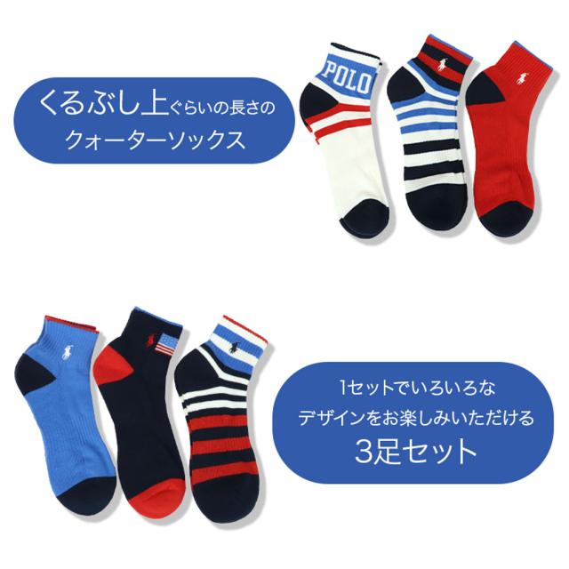 【3足セット】ポロ・ラルフローレン ソックス メンズ ショートソックス 靴下 大きめ 28-30cm Polo Ralph Lauren ブランド リブ カジュアル ビッグサイズ US10-13