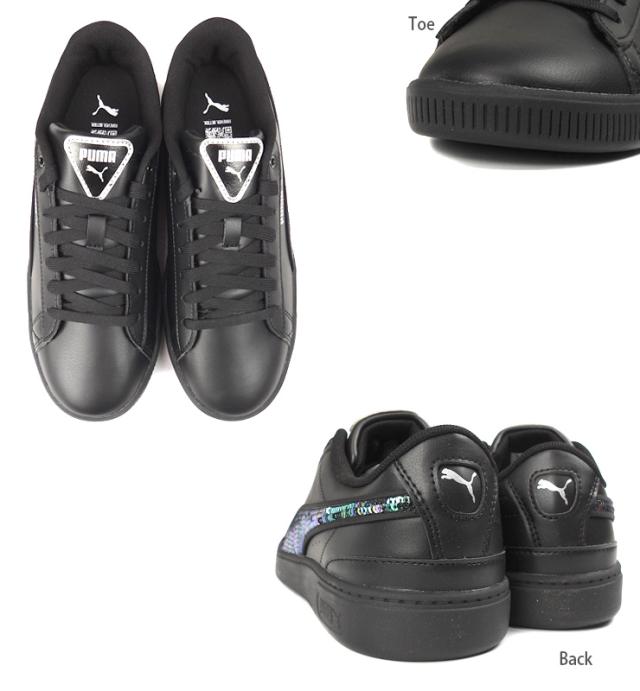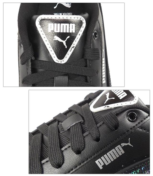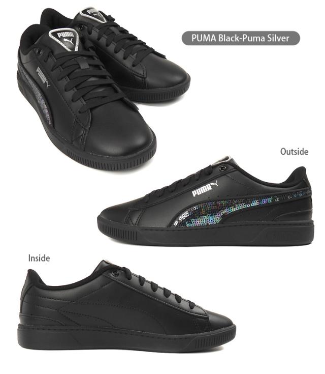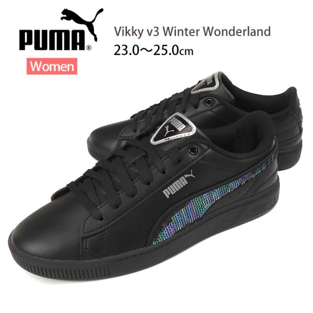 【箱アウトレット】PUMA Vikky v3 Winter Wonderland ローカット スニーカー シューズ レディース ブラック 23 23.5 24 24.5 25 プーマ ビッキー v3 ウィンター ワンダー ランド 392489 02 女性 靴 レースアップ 紐 フェイクレザー 黒 PUMA Black-PUMA Silver sh2175