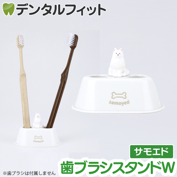 サモエドのフィギュアがちょこんと乗った、歯ブラシを2本立てられる「歯ブラシスタンドW(ダブル)」!