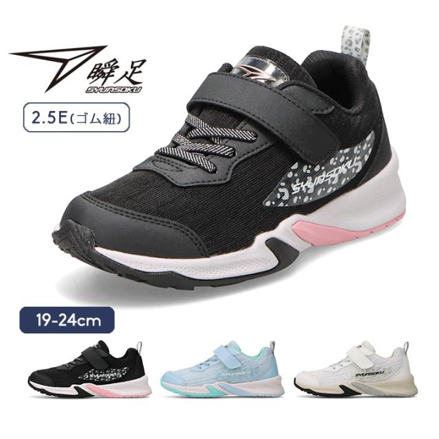 | 瞬足 スニーカー キッズ ジュニア 女の子 シューズ 小学生 小学校 2.5E 幅広 子供 おしゃれ かわいい 19cm 20cm 21cm 22cm 23cm 24cm 女児 運動会 運動靴 ゴム紐 syunsoku |