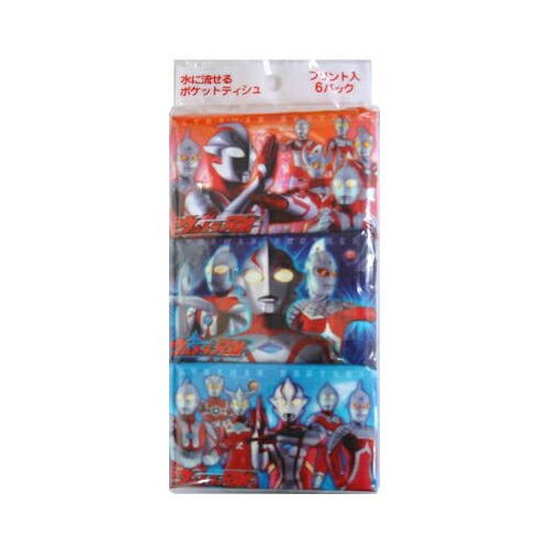 ハヤシ商事 ウルトラマン 水に流せるポケットティシュ 16枚(8組)×6個入 メール便送料無料