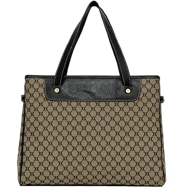 セリーヌ ハンドバッグ ec-23530 ベージュ ブラウン マカダム 美品 キャンバス レザー 中古 YS 00/45 CELINE 軽い ロゴ ヴィンテージ レディース 手持ち 定番 人気 黒 マイクロマカダム キャンバスバッグ ゴールド金具 ブランド 本物 鑑定済み
