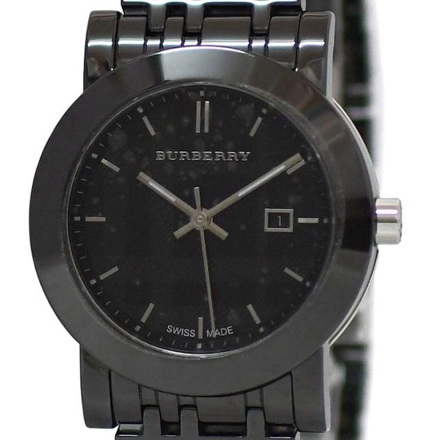 バーバリー 腕時計 f-23528 ブラック ヘリテージチェック BU1871 美品 時計 セラミック SS 中古 クオーツ BURBERRY レディース ヘリテージブレス 電池式 黒文字盤 日付 QZ 黒 女性 定番 人気 シンプル ウォッチ アナログ 黒文字盤 箱付き ブランド 本物 鑑定済
