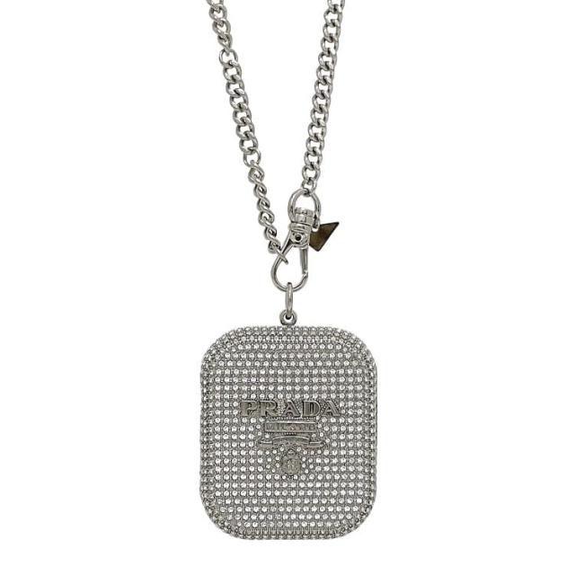 プラダ アップルウォッチ ケース 44mm f-23571 シルバー 9Y1VBW 未使用 美品 メタル ラインストーン Sランク PRADA Apple watch ネックレス レア キラキラ ロゴ チェーン カバー レディース メンズ ネックレスタイプ 持ち運び用ケース ブランド 本物 鑑定済み