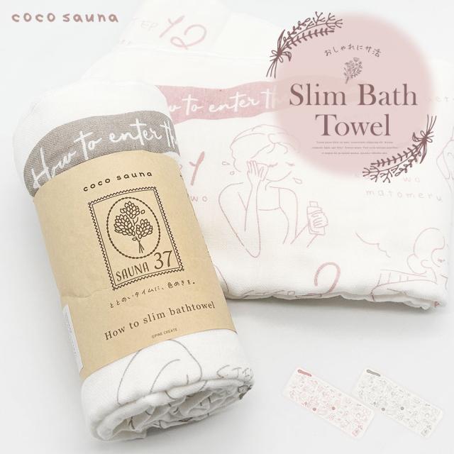 バスタオル 小さめ 薄手 速乾 薄手タオル 綿100% 日本製 サウナ 銭湯 温泉 スパ 岩盤浴 アウトドア プール ジム サ活 外気浴 腰巻きタオル バスグッズ プレゼント ギフト ピンク ブラウン coco sauna How to スリムバスタオル