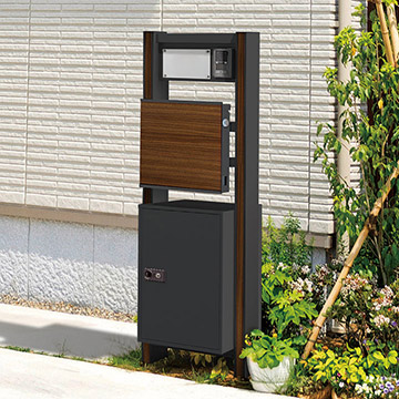 宅配ボックスを標準搭載。木目柄&表札でコーディネートできる機能門柱。