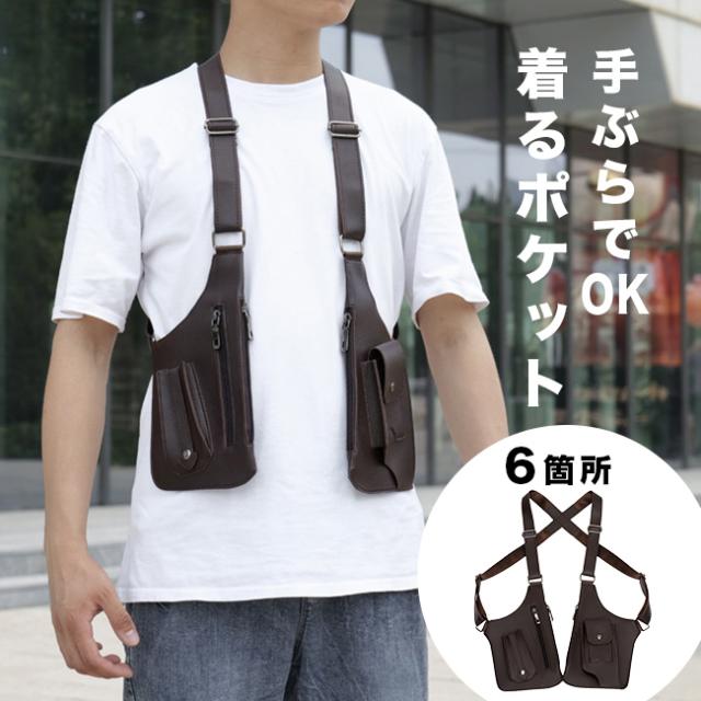 まるでベストのように羽織るだけでスマートに決まる両肩掛けタイプの多機能バッグ。