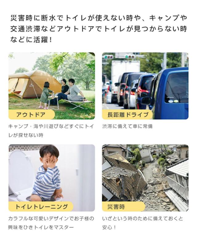 簡易トイレ キッズ用 折りたたみ式 簡易ポータブルトイレ 緊急トイレ 車載 処理袋付き おまる 水洗いOK 非常用 防災用品 防災グッズ 災害 キャンプ アウトドア 非常用トイレ 折りたたみ 蓋付 洗える 携帯 軽量 アウトドア 津波 防災 地震 台風 大雨 子供用トイレ 車載トイレ