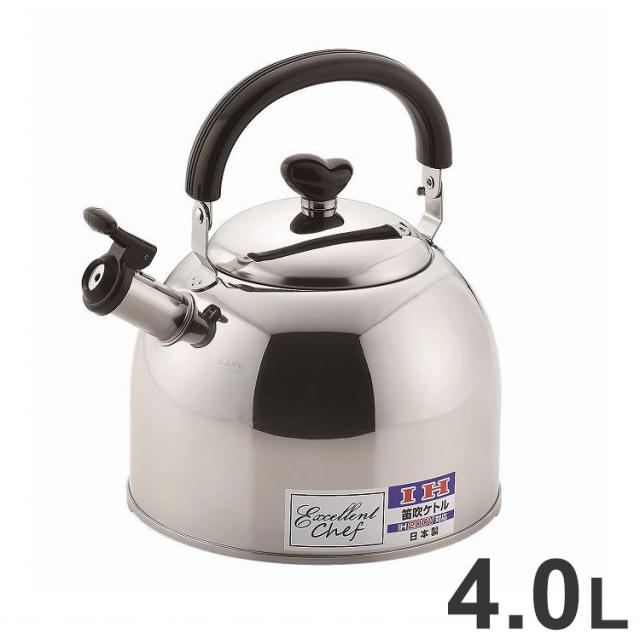 竹井器物 エクセレントシェフ 笛吹ケトル4.0L やかん お茶 コーヒー ガス火対応 IH電磁調理器(100V・200V)対応 IH対応 日本製 国産(代引不可)【送料無料】