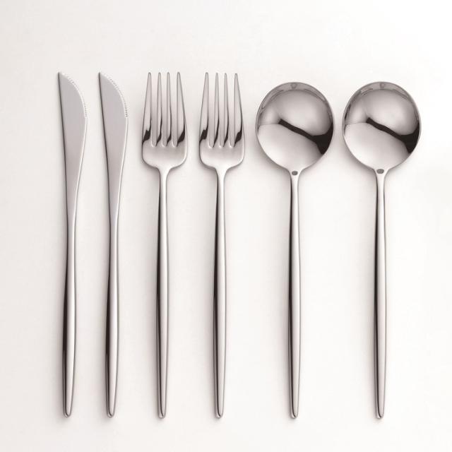 スラリと長い柄が持った時に美しい洋食器です。ステンレスタイプは柄の塗装が無く食洗器で洗うことが出来ます。シンプルな佇まいは卓上のコ-ディネ-トを邪魔せず、自然に馴染みます。デザイン性の高いディッシュプレ-トとも併せてもお使いいただけます。