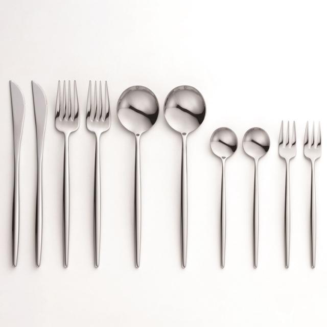 スラリと長い柄が持った時に美しい洋食器です。ステンレスタイプは柄の塗装が無く食洗器で洗うことが出来ます。シンプルな佇まいは卓上のコ-ディネ-トを邪魔せず、自然に馴染みます。デザイン性の高いディッシュプレ-トとも併せてもお使いいただけます。