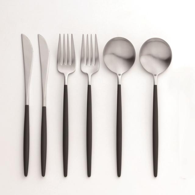 つや消しで、金属光沢は抑えめ柄の部分はマット調のブラックなので主張が強すぎず、食卓を自然に引き締めてくれるようなシックな印象です。