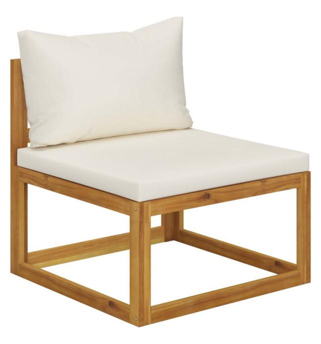 vidaXL ミドルソファセクション クリームホワイトクッション付き アカシア無垢材家具アウトドア家具屋外椅子屋外用組み合わせソファセット(代引不可)【送料無料】
