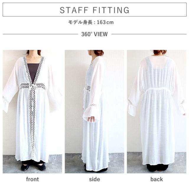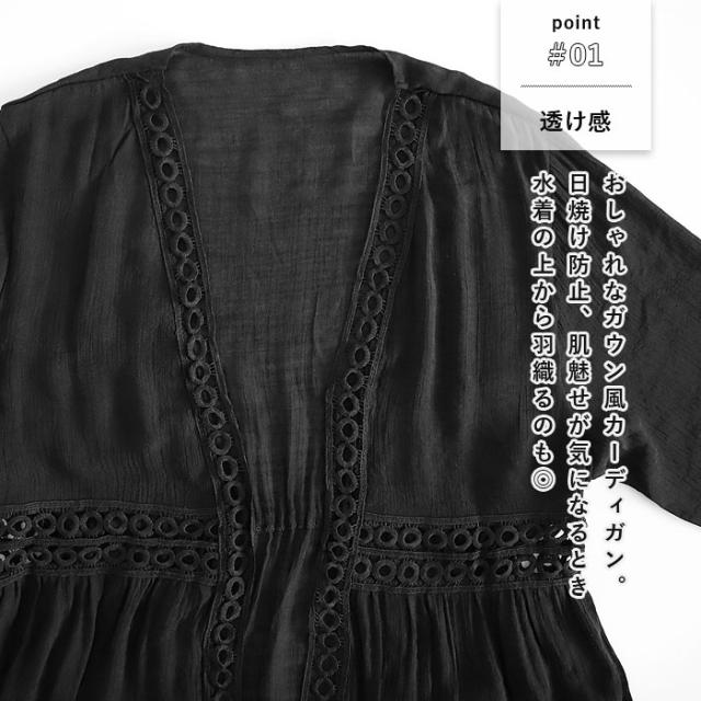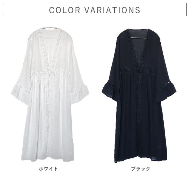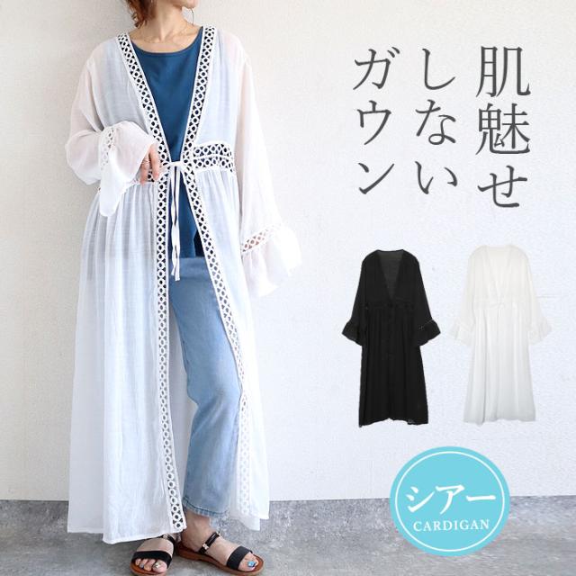 春新作 トップス レディース カーディガン 春 夏 白 黒 おしゃれ 長袖 ガウン風カーディガン コットン混 綿混 日焼け防止 透け感[郵3]^v189^ ★