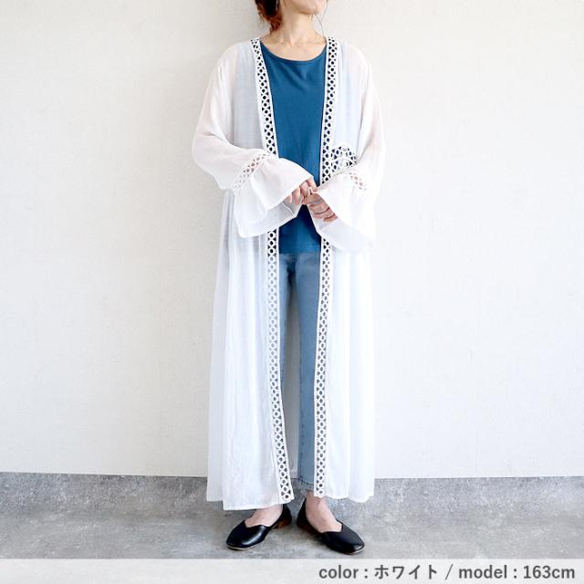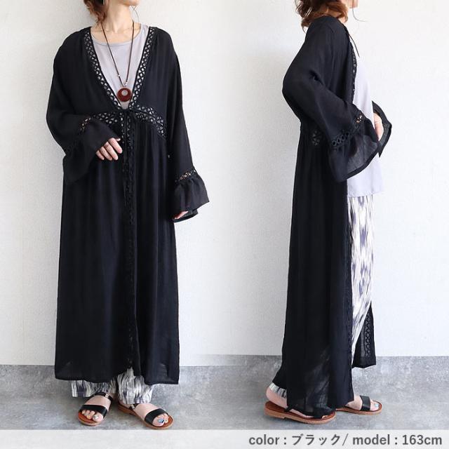 トップス レディース カーディガン 春 夏 白 黒 おしゃれ 長袖 ガウン風カーディガン コットン混 綿混 日焼け防止 透け感 薄手 日焼け対策 可愛い シンプル 40代 30代 50代 60代 大きいサイズ ゆったり 大人 カジュアル かわいい きれいめ SALE セール uricca ウリッカ うりっか