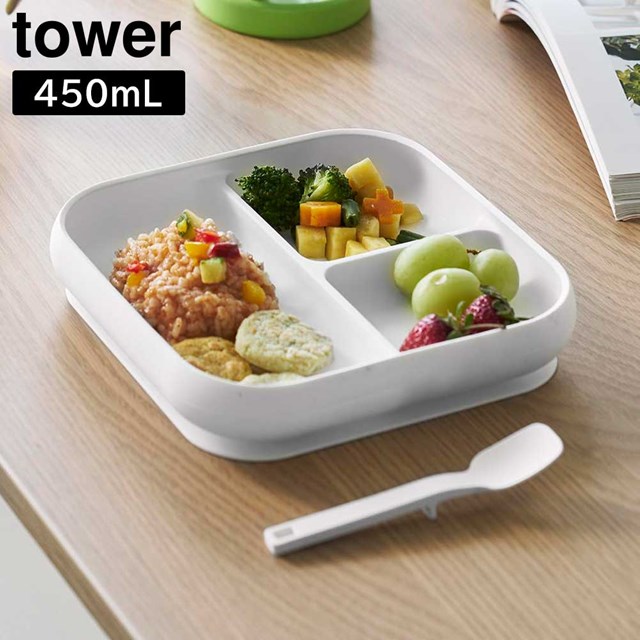 【tower】吸盤付きシリコーンベビーフードトレー 10049 10050 ホワイト ブラック【山崎実業 タワー どんぶり お茶碗 お椀 シリコンボウル シリコン食器 赤ちゃん 離乳食 ベビー食器 幼児 子供 yamazaki】