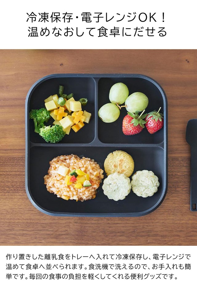 こぼれにくいシリコーン製のベビーフードトレーです。 |