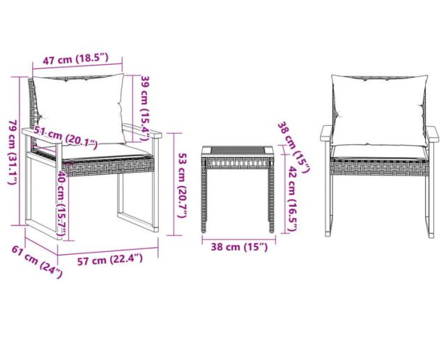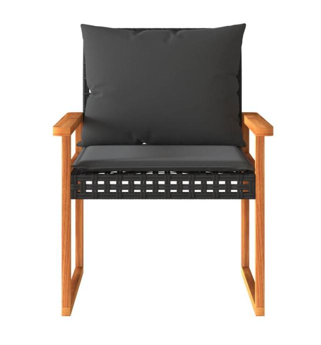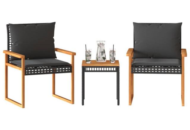 vidaXL ビストロ3点セット クッション付き ブラック ポリラタン アカシア木材家具アウトドア家具屋外家具セット(代引不可)【送料無料】