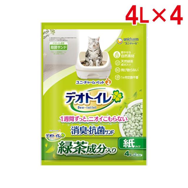 即納在庫品 ユニチャーム 【即納在庫品】 【セット販売】ユニ・チャーム デオトイレ 緑茶成分入り消臭・抗菌サンド 4L × 4袋1週間ずっと、ニオイこもらない 猫砂