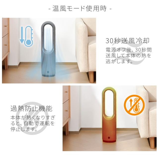 タワーファン 扇風機 羽なし タワー型 コンパクト スリム 節電 省エネ 風量調整 温風 送風 3段階温風 8段階送風 サーキュレーターリモコン付き 一年保証