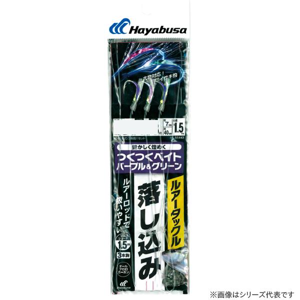 ハヤブサ ルアータックル落し込み つくつくベイト パープル&グリーン 3本鈎 11-16 SS442 (胴突仕掛け 釣り)