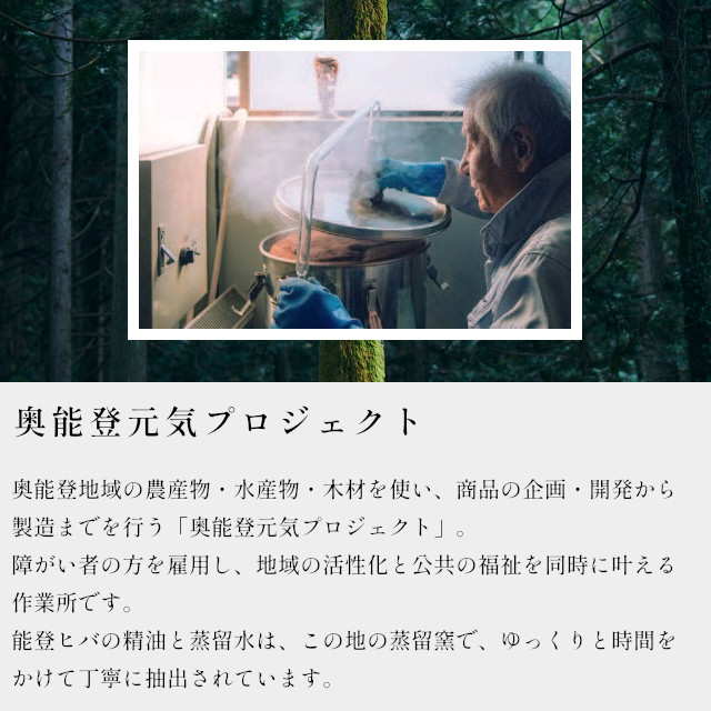 能登ヒバの蒸留水を使用した100%天然素材の除菌・消臭スプレー。