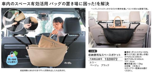 日本製 収納便利なスペースポケット 全2色 車載 ポケット 収納グッズ ヘッドレスト ひっかける ポケット バッグ カー用品 便利グッズ 収納ポケット ブラック ベージュ 黒 薄茶色 シンプル dz p27457