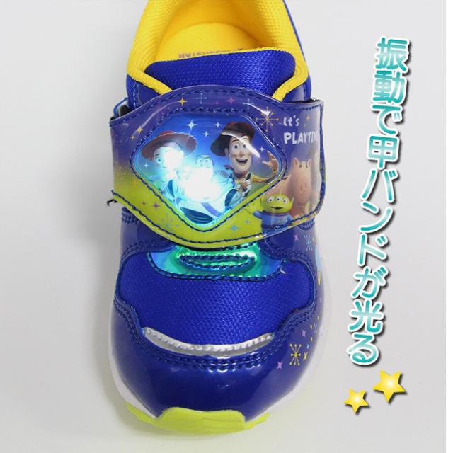 通園をはじめ、外遊びや運動、お出かけなど、マルチに履いていただけます。甲バンドの発光部分がキャラクターのモチーフを象ったデザインで、おもちゃ感覚の楽しい一足