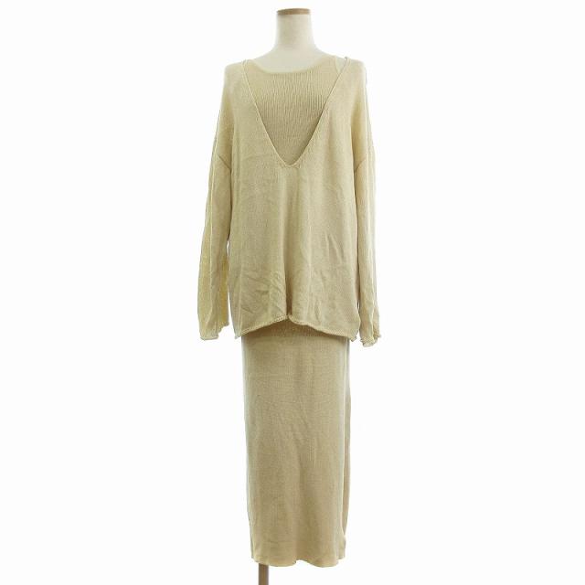 【中古】セレクトモカ 2WAYアメリカンスリーブロングニットワンピース レイヤード セーター Vネック M ベージュ