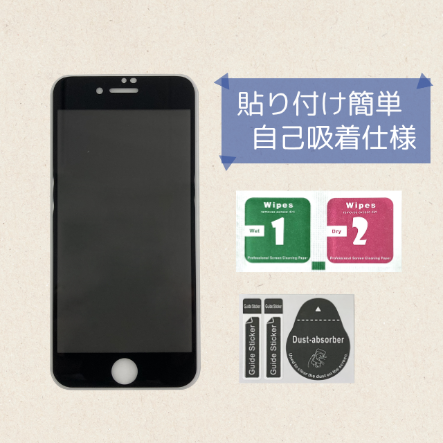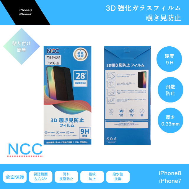 ガラスフィルム 覗き見防止 保護フィルム NCC iPhone8用 iPhone7用 黒 強化ガラス 硬度9H 飛散防止 自己吸着 全面保護