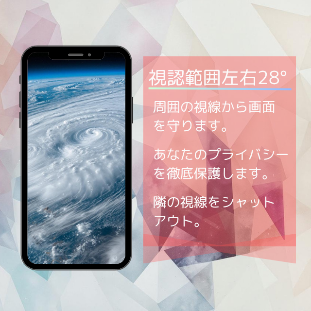 当フィルムは「視認範囲左右28°」に設計されているため、正面から画面がクリアに見え、左右からはほとんど見えません。