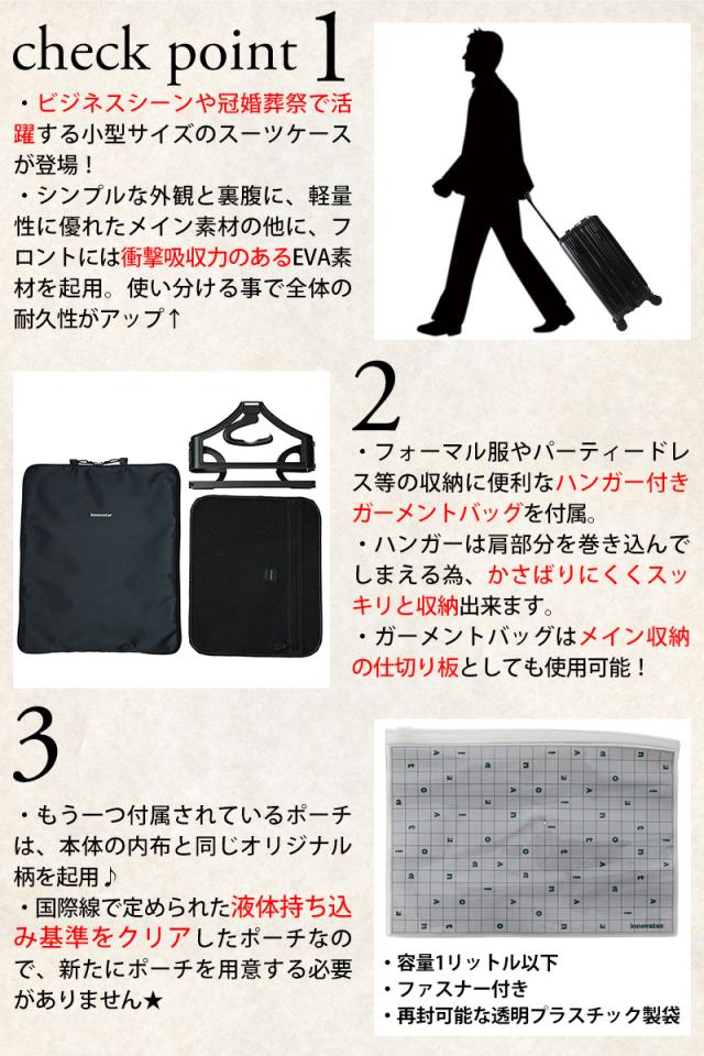 | 商品 | ビジネスキャリー ガーメントケース キャリー ハード INV5EVA 小型 ファスナータイプ | ||